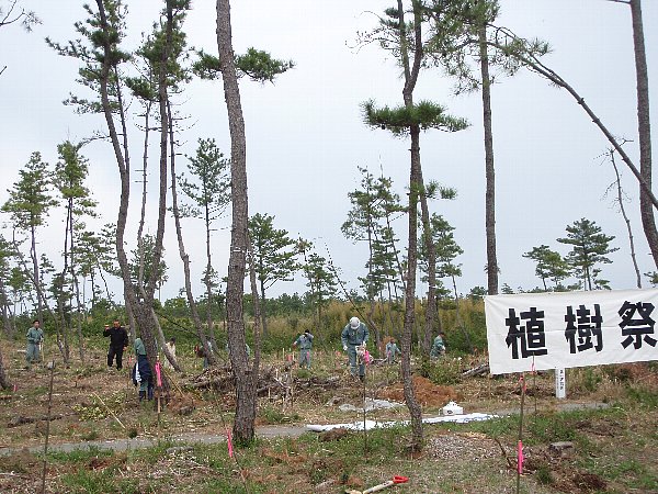 - 一ツ葉海岸線を白砂と青松に再生させます。「松」(防風林)を守ります。