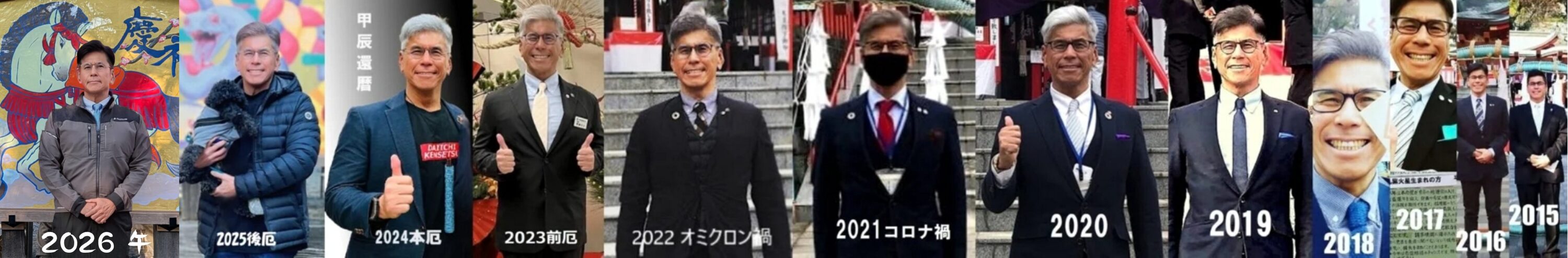 毎年、新年一月に撮影した等身写真を連結して早12年。若返りプロジェクト進行中です!